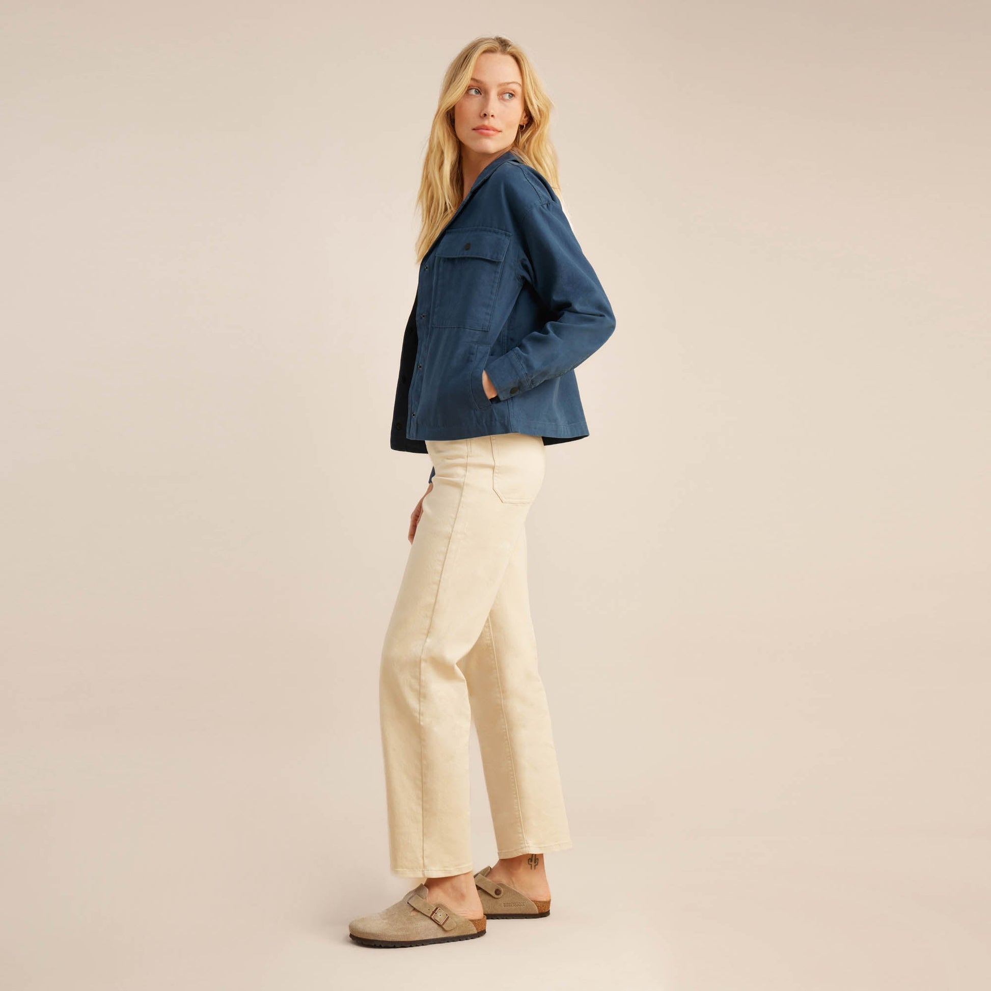 The Passport jacket is our trans-seasonal travel essential. Constructed from a soft organic cotton canvas, it's our easy throw-on adventure companion, the perfect layering piece for early mornings, long days, and even longer nights. A slightly oversized, boxy fit with eight pockets, including two hidden zip pockets for extra security when on the go.